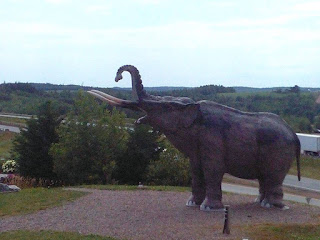 *Apparently the folks who own the home behind the park? were not so happy to look out and see a plastic mastodon bum. So, they petitioned the powers that be, and now, instead of seeing the face of the mastodon from the highway, you get mooned!